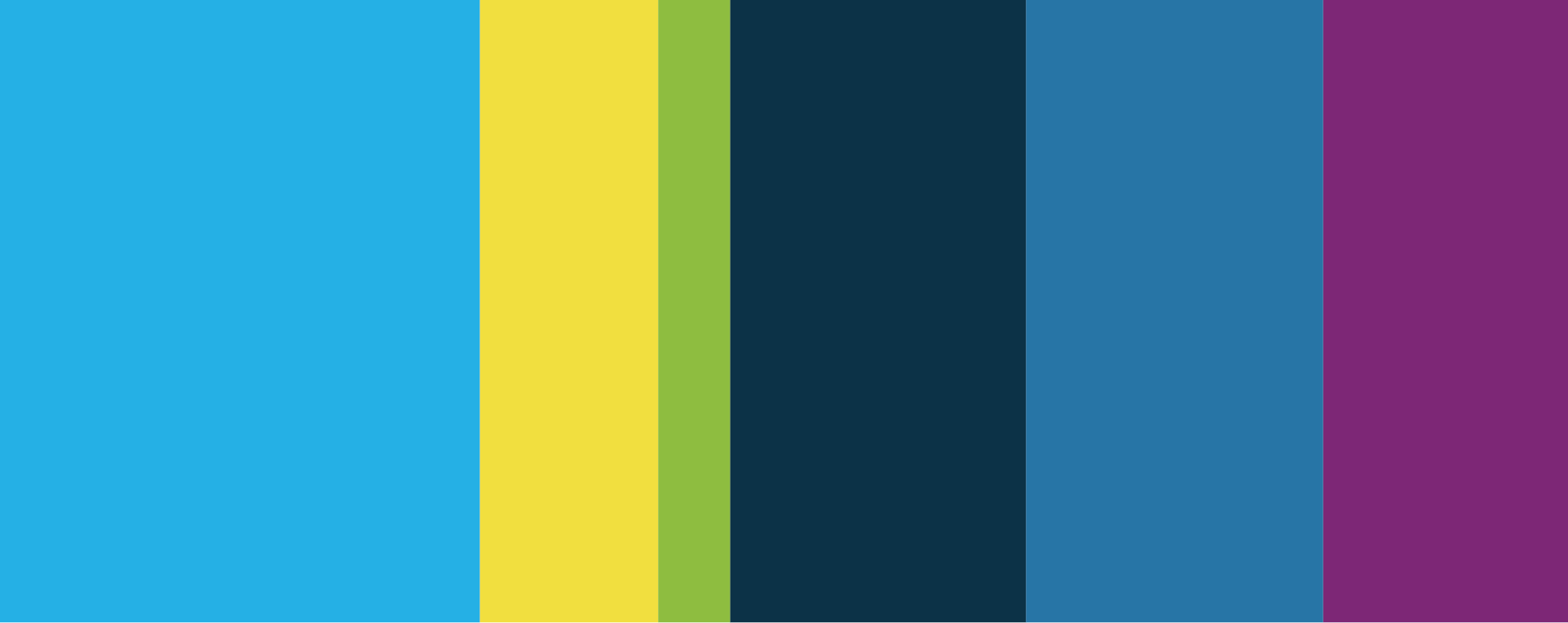 The brand color palette consists of a range of six colors. Use the assigned color values below when creating brand materials.